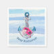 Blumenstrauß auf nautischem Anker mit gewelltem, wasserfarbenem Hintergrund.