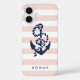 Unser femininer Blick auf das nautische Aussehen zeigt eine Seil- und Ankerillustrierung in klassischem Marineblau auf einem hellrosa und weißen Streifen Hintergrund. Personalisieren Sie Ihre Daten mit einem Namen, Monogramm oder Text Ihrer Wahl. Coordinating Accessoires in unserem Shop erhältlich.
