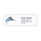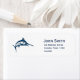 Spezielle trendige nautische personalisierte Adresseetiketten mit einem Design einer Vintagen Schwertfisch-Illustration in marineblau gegen eine stilvolle, saubere, weiß anpassbare Farbe. Der Text ist vollständig anpassbar, um Ihre persönlichen Daten einzubeziehen.