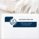 Nautisches Design mit Anker- und Lorbeerkraendekoration über blau-weißem geometrischem Hintergrund