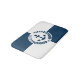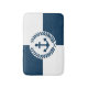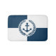 Nautisches Design mit Anker- und Lorbeerkraendekoration über blau-weißem geometrischem Hintergrund