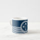 Nautisches Design mit nautischen Symbolen (Anker, Segelboot, Segelrad, Kompass) Dekoration auf weißem und marineblauen Streifen Hintergrund.