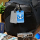 Nautisches Design mit Ankerdekoration auf blau gestreiftem und grauem Holzboden. Bitte beachten Sie, dass dies nicht aus Holz ist, es ist eine Holzgrafik.
