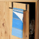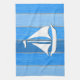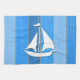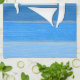Nautisches Design mit Segelbootdekoration auf blau gestreiften und grauen Holzböden. Bitte beachten Sie, dass dies nicht aus Holz ist, es ist eine Holzgrafik.