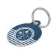 Nautisches Design mit nautischen Symbolen (Anker, Segelboot, Segelrad, Kompass) Dekoration auf weißem und marineblauen Streifen Hintergrund.