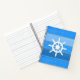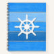 Nautisches Design mit Segelraddekoration auf blau gestreiftem und grauem Holzboden. Bitte beachten Sie, dass dies nicht aus Holz ist, es ist eine Holzgrafik.
