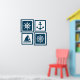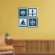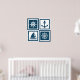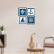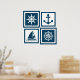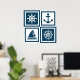 Nautisches Design mit Segelrad, Segelboot, Kompass und Ankerdekoration in weiß-blau gestreiften Quadraten