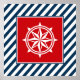 Nautisches Design mit Kompassdekoration in quadratischem, blau-weiß gestreiftem Hintergrund