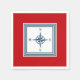Nautisches Design mit Kompassdekoration in gestreiften Quadraten auf rotem Hintergrund