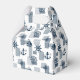 Seamless thematied design mit Segelboot, Kompass, Anker- und Segelraddekoration auf blau-weißem geometrischem Hintergrund