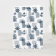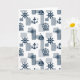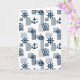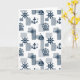 Seamless thematied design mit Segelboot, Kompass, Anker- und Segelraddekoration auf blau-weißem geometrischem Hintergrund