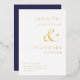 Personalisierte Navy Blue Ampere und Hochzeit speichern das Datum Gold Foil Einladung.