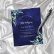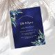 Ein marineblauer blauer Hintergrund mit Grünpflanzen. Die blaue Farbe ist ungleichmäßig. Personalisieren Sie Ihren Namen und Ihre Party-Daten und fügen Sie diese hinzu. 1 Blatt = 1 Einladungs-Druckkante bis Kante.