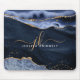 Navy Blue Agate Geode Gold Glitzer Script Monogram Mousepad