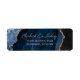 This elegant modern wedding invitation return address label features a navy blue watercolor agate background trimmed with faux rose gold glitter. The customizable text combines rose-colored handwriting script and copperplate fonts.