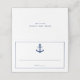 Nautische gefaltete Hochzeitsstift mit einem marineblau Anker mit Monografie auf beiden Seiten, umgeben von einem Rand. Die Innenseite ist in einem passenden Schatten von marineblau gehalten und die Rückseite hat Ihre Namen und Datum. Ein schlichtes und elegantes Design, das sich perfekt für eine Hochzeit am Strand im Sommer eignet.