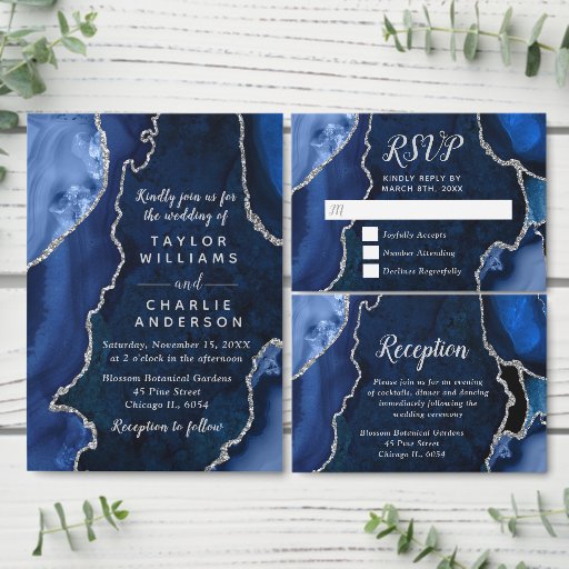 Navy Blue and Silver Agate Marble WeddingDesignt von Kirsty W