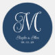 Navy Blue and White Hübsch Curly Wedly Monogram Runder Aufkleber