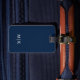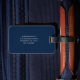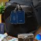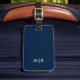 This modern luggage tag design features a dark navy blue background, with your initials in bold white text for a look that is simple and stylish, yet professional.