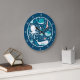Add a custom nautical touch to your little kid's bedroom or nursery with this adorable ocean wall clock. Clock has a pattern of a whale, octopus, sailboat, jellyfish, and lighthouse on a navy blue background. Clock may be personalized with the first name of your kid.