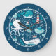 Navy Blue and White Nautical Ocean Pattern Boy Große Wanduhr