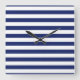 Navy Blue and White Stripe Pattern Quadratische Wanduhr