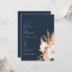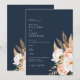 Hochzeitseinladung zum Thema Navy und Blumenblumen mit boho schicken Aquarellakzenten von Peony-Rose und Pampas-Gras-Blume. Einfach mit den Details Ihrer Hochzeit für Ihre Gäste in eleganter minimalistischer Typografie zu personalisieren.