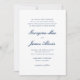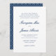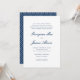 Eine elegante, blau-weiße Hochzeitseinladung für jede Hochzeitszeit oder jedes Thema. Es zeichnet sich durch ein gewagtes Skript, einfache Typografie und elegantes Muster aus. Die Texte sind vollständig editierbar. Personalisieren Sie diese durch Hinzufügen von Monogrammen, Namen, Datum, Uhrzeit und anderen Ereignisdetails.