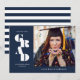 Feiern Sie die große Leistung Ihres Absolventen mit dieser marineblauen, blauen und weißen Ankündigung des modernen Abschlusses. Es zeigt das Wort grad geschrieben in einer fett Serif auf der links mit Platz für ein Foto des Absolventen auf der rechten Seite.