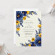This design features a striking contrast of deep navy blue and radiant golden yellow watercolor florals. Painterly anemones and delicate blossoms are arranged in a lush, asymmetrical composition against a soft cream backdrop. The mood is sophisticated yet cheerful, perfect for an elegant seasonal event. The botanical elements include bold navy leaves and vibrant yellow petals that create a modern artistic feel.