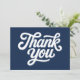 Eine raffinierte Dankeschön-Karte mit fett weißer Kalligraphie auf marineblau-blauem Hintergrund, perfekt, um herzliche Dankbarkeit mit zeitloser Eleganz auszudrücken.