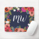 Blumenmousepad mit einem Rahmen aus handgezeichnet Blume in Orange, Hot-Rosa, Korallenrot und Rosa mit einem dunkelblauen Hintergrund. Fügen Sie Ihre Initialisierung in einem hübschen weißen Kalligrafieschrift hinzu.