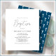 Feiern Sie stilvoll die Taufe Ihres Kindes mit unseren preiswerten und eleganten Einladungen aus Papier! Diese Einladungen mit einem modernen Skript auf einem weißen Hintergrund und einem weißen und marineblau-blauen Quermuster auf der Rückseite sind für Ihre persönliche Touch bereit, sie einzigartig zu machen.