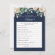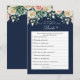 Navy Blue Floral Who Knows the Bride Best Game - bietet dekorative Drehbücher mit elegantem, rosa Rosen und cremefarbenen Blume, grüne Blätter. Die Rückseite dieses Answer Game ist marineblau mit romantischen, rosa und beige Blume in Rosa und Blau.