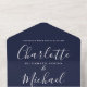Navy Blue Elegant Modernes Script QR Code Hochzeit All In One Einladung