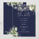 This elegant navy blue greenery floral save-the-date invitation can be personalized with your information in chic typography. Designed by Thisisnotme©