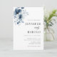 Navy Blue Floral Minimal Plain All in One Wedding Einladung