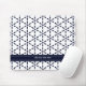 Navy Blue Geometric Pattern on White Mousepad