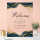 Navy Blue Gold Abstract Ink Wedding Welcome