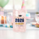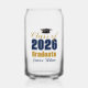 Customize your own navy blue and gold Class of 2026 graduate can glass gift for a college graduation party. Cool varsity letters for the year on a great custom commemorative keepsake for university seniors.