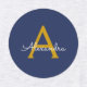 Navy Blue Gold Moderne Script Girl Monogram Name Etiketten