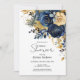 Invitation Fête des mariées florale moderne en or bleu marine