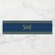 Elegantes, marineblaues Etikett mit Goldflasche.
