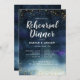 Elegantes Hochzeitsessen Probe Einladung mit vergoldeten Glitzer und marineblau Aquarell. Diese Vorlage enthält bereits Texte, die alle Informationen enthalten, die Sie für Ihr Ereignis benötigen. Texte sind online leicht anpassbar.