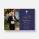 Navy Blue Gold Script Boy Foto Erste Kommune Folieneinladung