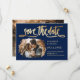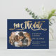 Elegantes marineblaues und goldenes Hochzeitsstichtum Foto speichern die Dattelkarten mit einem modernen Script-Schriftart. Diese Karte kann einfach mit Ihren Bildern und Hochzeitsdetails personalisiert werden.