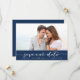 Anpassbare Ankündigung Datum freihalten mit handgeschriebenem Skript auf marineblarem Hintergrund. Andere Farben und ähnliche Gegenstände sind verfügbar.