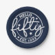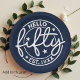 Feiern Sie Ihren 50. Geburtstag mit stilvollen Party-Accessoires, die das auffällige weiße Typografie-Set vor einem schlichten marineblauen Hintergrund präsentieren. Stolz zeigen sie die Nachricht "Hello Fifty", die Gäste einlädt, an der Feier teilzunehmen. Sie können diese Gegenstände noch weiter personalisieren, indem Sie Ihr Geburtsjahr hinzufügen und sie damit einzigartig zu Ihrem machen.