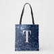 Navy Blue Imitats Glitzern Bokeh Funkelnd Monogram Tasche