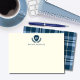 Navy Blue Kariert Monogram Correspondence Mitteilungskarte